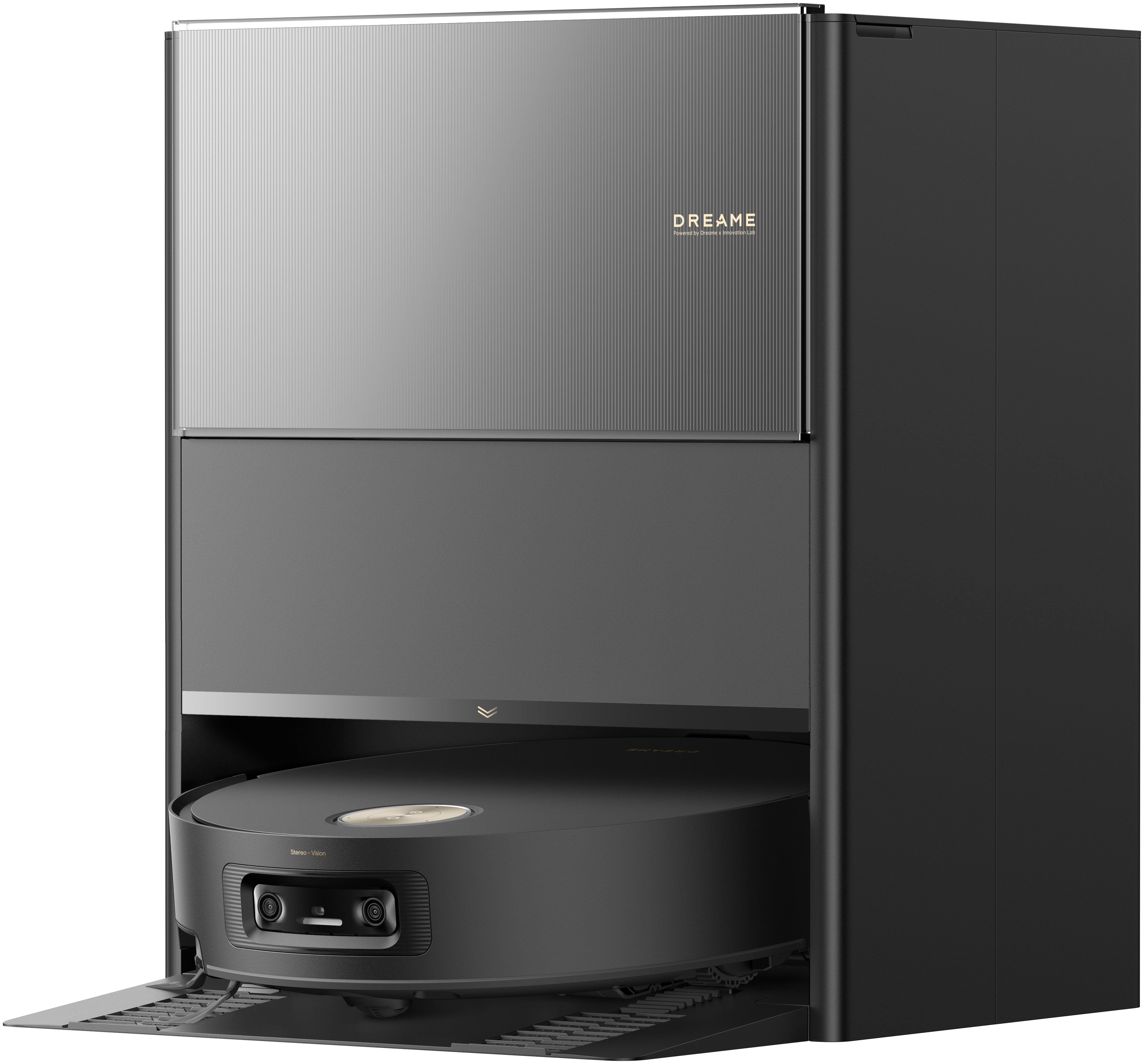 Станция полностью берёт на себя обслуживание робота. Она опустошает встроенный пылесборник объемом 0.22 л в большой контейнер станции на 2.5 л, подаёт чистую воду из резервуара на 4 л и возвращает робота к уборке после зарядки. Такой подход значительно снижает необходимость ручного ухода и делает модель почти автономной.